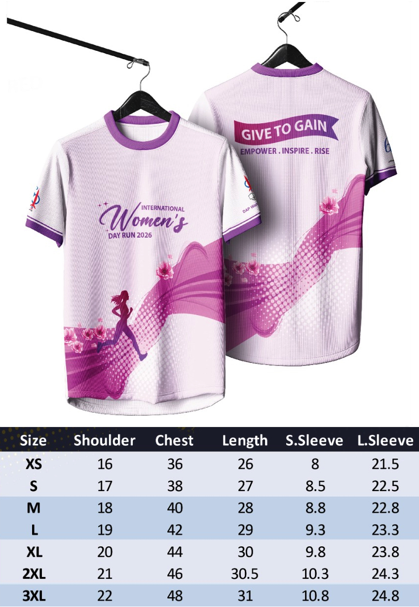 - Size changes are not allowed during the collection day. The organiser will do our best to meet the t-shirt size filled in by the participant on the registration form. However, if there are any discrepancies beyond the organizers’ control, there is no guarantee that the "correct" size will be provided to the runner.